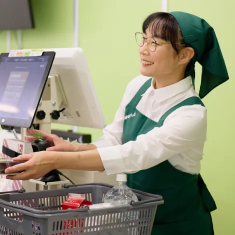 まいばすけっとのよいところは、難しいお仕事がないこと。ほら、こんな歳ですから、新しいこと覚えるのが大変なんです(笑)。コンビニさんのお仕事って、いろいろ複雑でしょ。支払いとか、食品の温めとか、私がやったら目が回っちゃいます。まいばすけっとは、基本を覚えれば、それを続けていけばいいんです。仕事が簡単な分、事務的ではない、お客さまの立場に立った接客もできますしね。まいばすけっとに常連さんが多いのもそんな理由かもしれません。一緒に働く若い方とも友達になりました。すごく世界が広がりましたね。まいばすけっとで働いて本当によかったです。